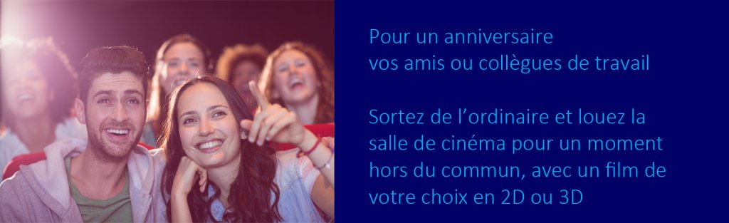 N'hésitez pas à nous contacter pour une offre de location de la salle avec la projection d'un film 35mm ou sur support DVD / BLU-RAY / Copie de film digital DCP et films en 3D